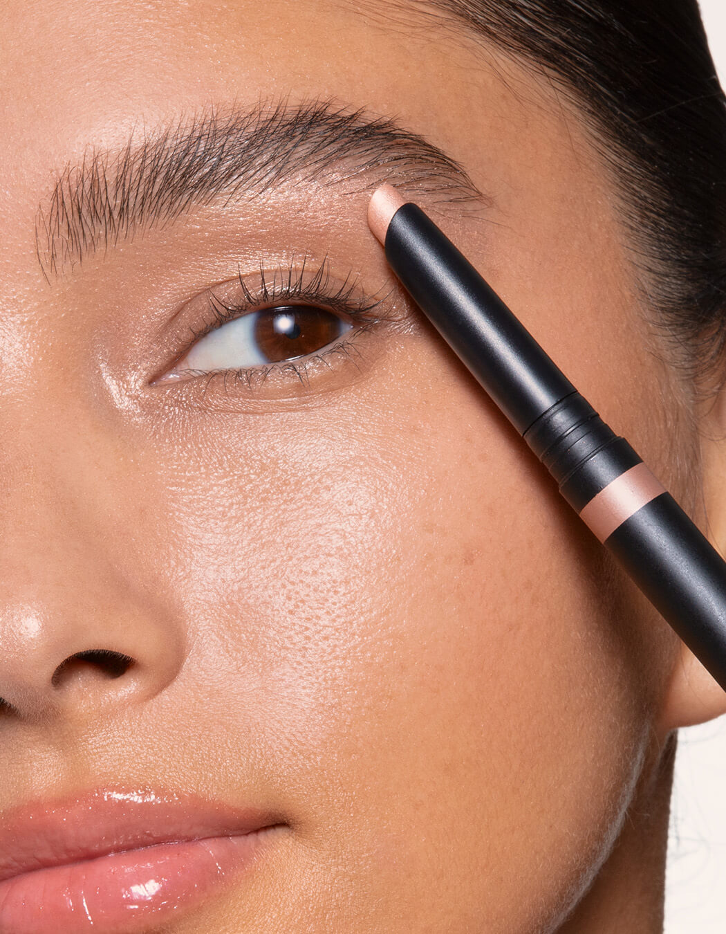 Po nałożeniu serum do brwi oraz żelu do stylizacji użyj Spotlight Stick, aplikując produkt w wewnętrznych kącikach oczu oraz pod łukiem brwiowym. Następnie delikatnie rozetrzyj palcem lub pędzelkiem, aby uzyskać subtelny, naturalnie rozświetlony efekt.